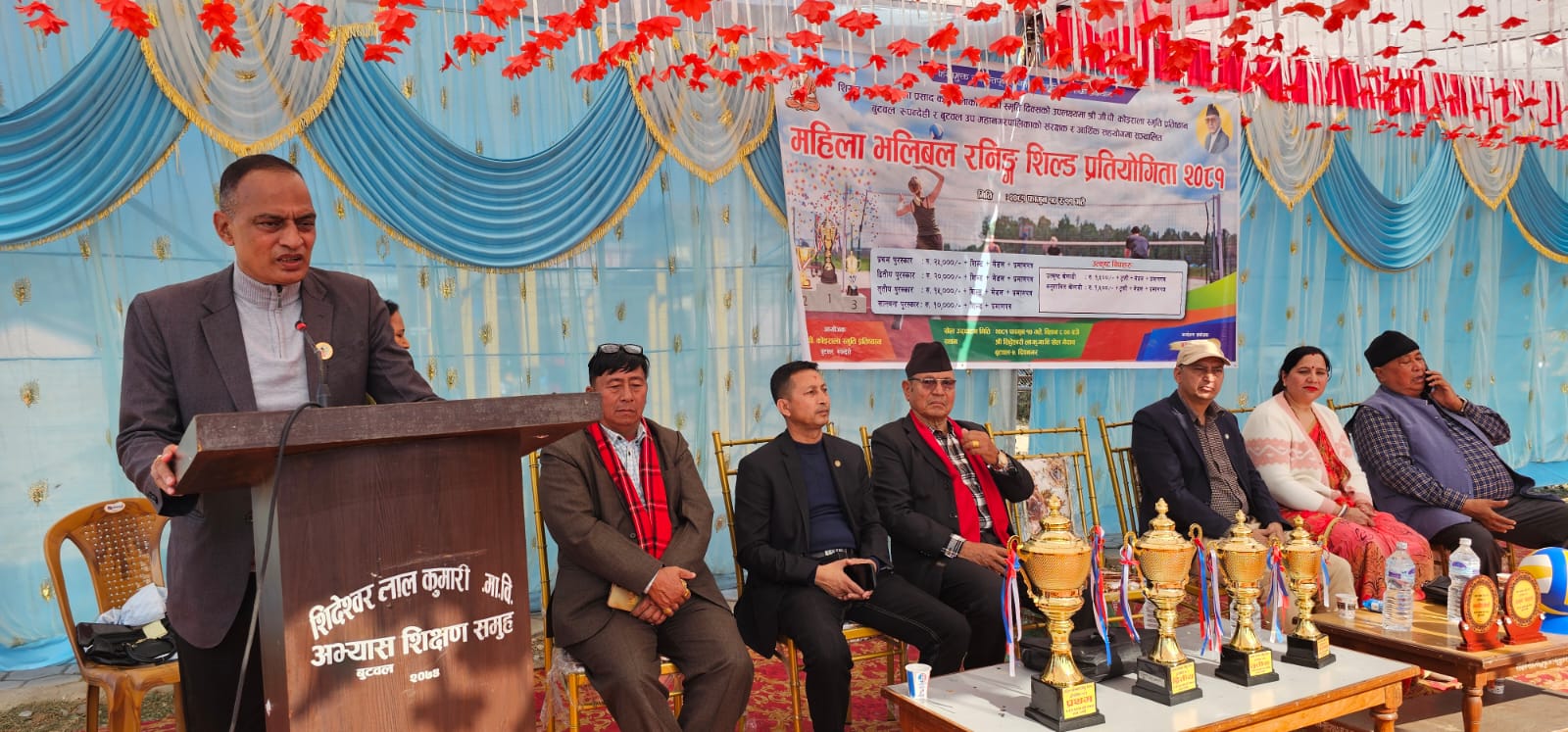 बुटवल । जी पी कोईराला स्मृति प्रतिष्ठान रुपन्देहीको आयोजनामा महिला भलिबल प्रतियोगिता सुरु भएको छ । शनिबारबाट सिद्धेश्वरी माविको खेल मैदानमा सुरु भएको यो प्रतियोगिताको शनिबार बुटवल उपमहानगरपालिकाका प्रमुख खेलराज पाण्डेयले शुभारम्भ गरे ।