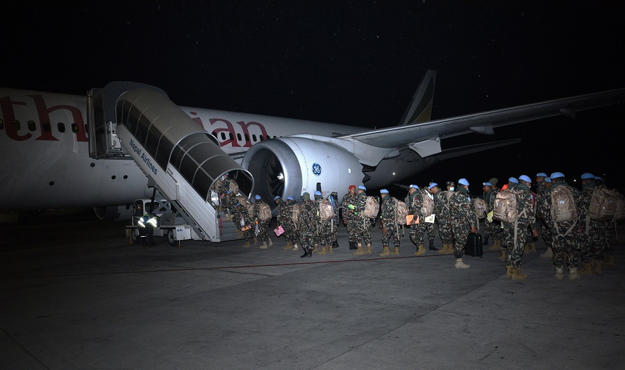 प्रमुख सेनानी महेश्वर सिलवाल नेतृत्वको दुई सय १३ सदस्यीय अरिदमन गण शनिबार काठमाडौँ आएसँगै सेनानी आचार्य नेतृत्वको फौज दक्षिण सुडानको राजधानी जुभातर्फ प्रस्थान गरेको हो ।