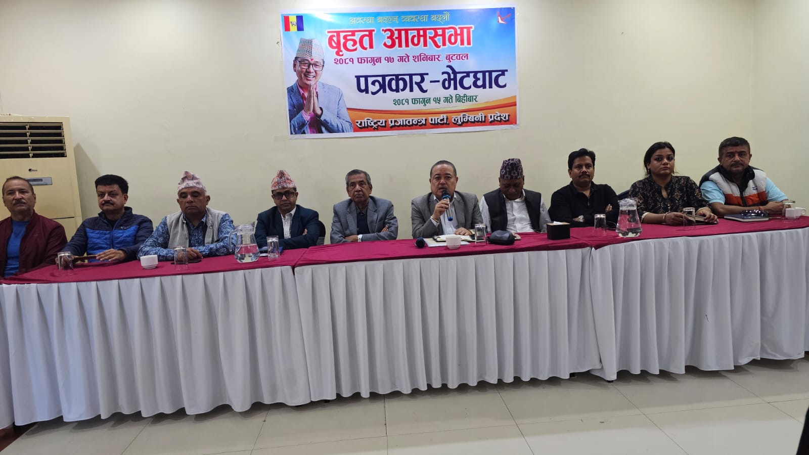 बिहीबार आमसभाबारे जानकारी दिन बुटवलमा आयोजित पत्रकार भेटघाट कार्यक्रममा राप्रपा लुम्बिनी प्रदेश अध्यक्ष प्रदीप कुमार उदयले सातवटै प्रदेशमा पार्टीले आयोजना गर्ने कार्यक्रम अन्तर्गत शनिबार जनजागरणको रूपमा सभा गर्न लागिएको जानकारी दिए । उनका अनुसार सभामा पार्टीका अध्यक्ष राजेन्द्र लिङ्देन, उपाध्यक्षद्वय विक्रम पाण्डे, ध्रवबहादुर प्रधान, महामन्त्री धवल शमसेर राणा, केन्द्रीय सल्लाहकार समितिका अध्यक्ष निरञ्जन थापा, प्रवक्ता ज्ञानेन्द्र शाही लगायतका नेताहरुले सम्बोधन गर्नेछन ।