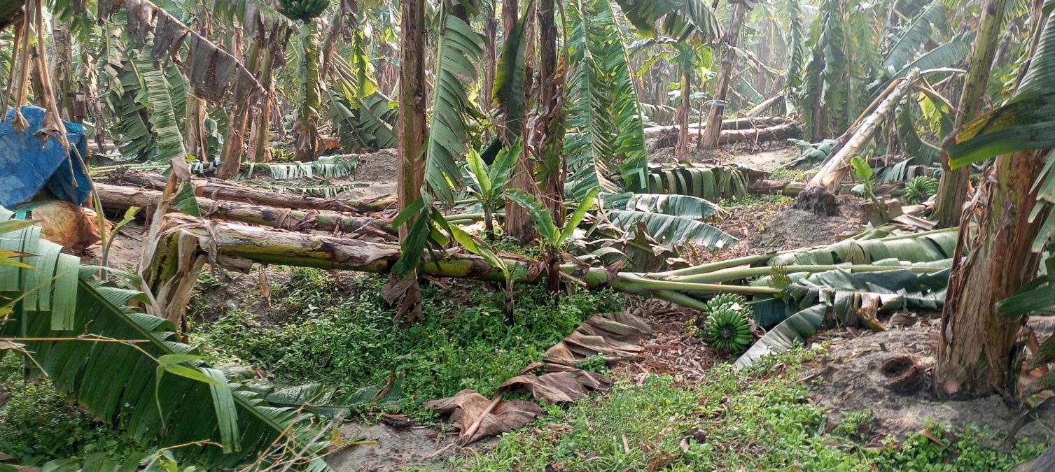 गत आइतबार राति र सोमबार साँझको हुरीबतासले खेतमा लगाएको केराको बोट ढलेर ठूलो क्षति भएको छ । स्थानीय किसानले ऋण लिएर गरेको केराखेतीमा एकैपटक यस्तो ठूलो हावाहुरी आएकाले लाखौँको लगानी डुबाउनेगरी क्षति भएको गुनासो स्थानीय किसानले गरेका छन् ।