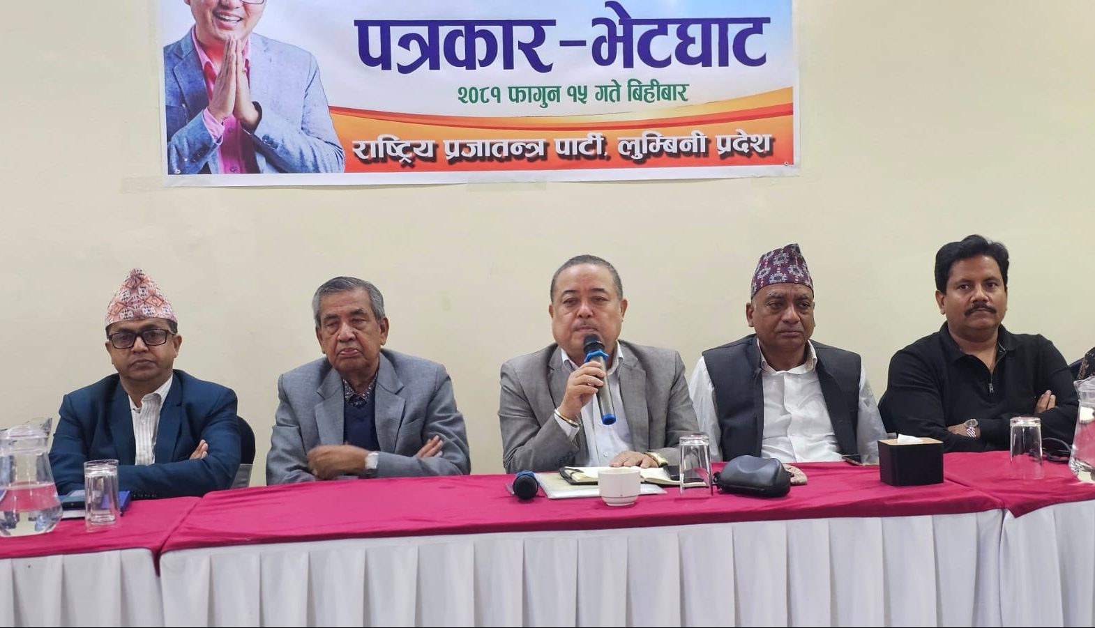 बुटवल । राष्ट्रिय प्रजातन्त्र पार्टी (राप्रपा)ले आज बुटवलमा आमसभा गर्दै छ । ‘अवस्था बदल्न व्यवस्था बद्लौं’ भन्ने नाराका साथ राप्रपा लुम्बिनी प्रदेशको आयोजनामा आज बुटवलमा आमसभा हुन लागेको हो ।