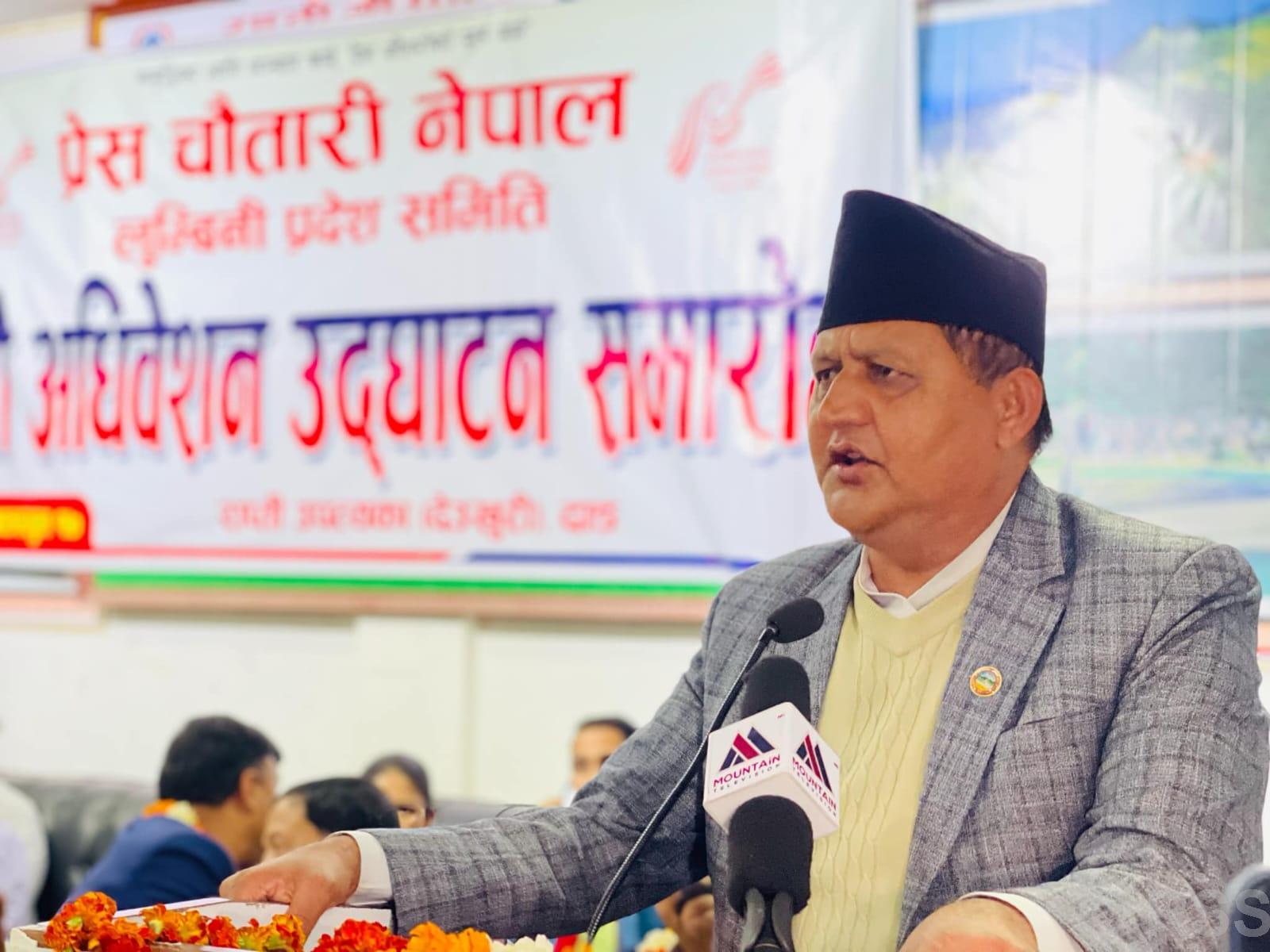 प्रेस चौतारी नेपाल, लुम्बिनी प्रदेश समितिको दोस्रो अधिवेशन उद्घाटन कार्यक्रमलाई राप्ती उपत्यका (देउखुरी)मा आज सम्बोधन गर्दै उनले प्रदेश सरकारले स्थापनाकालदेखि नै पत्रकारिता सशक्तीकरणलाई प्राथमिकतामा राख्दै आएको स्पष्ट पारे ।