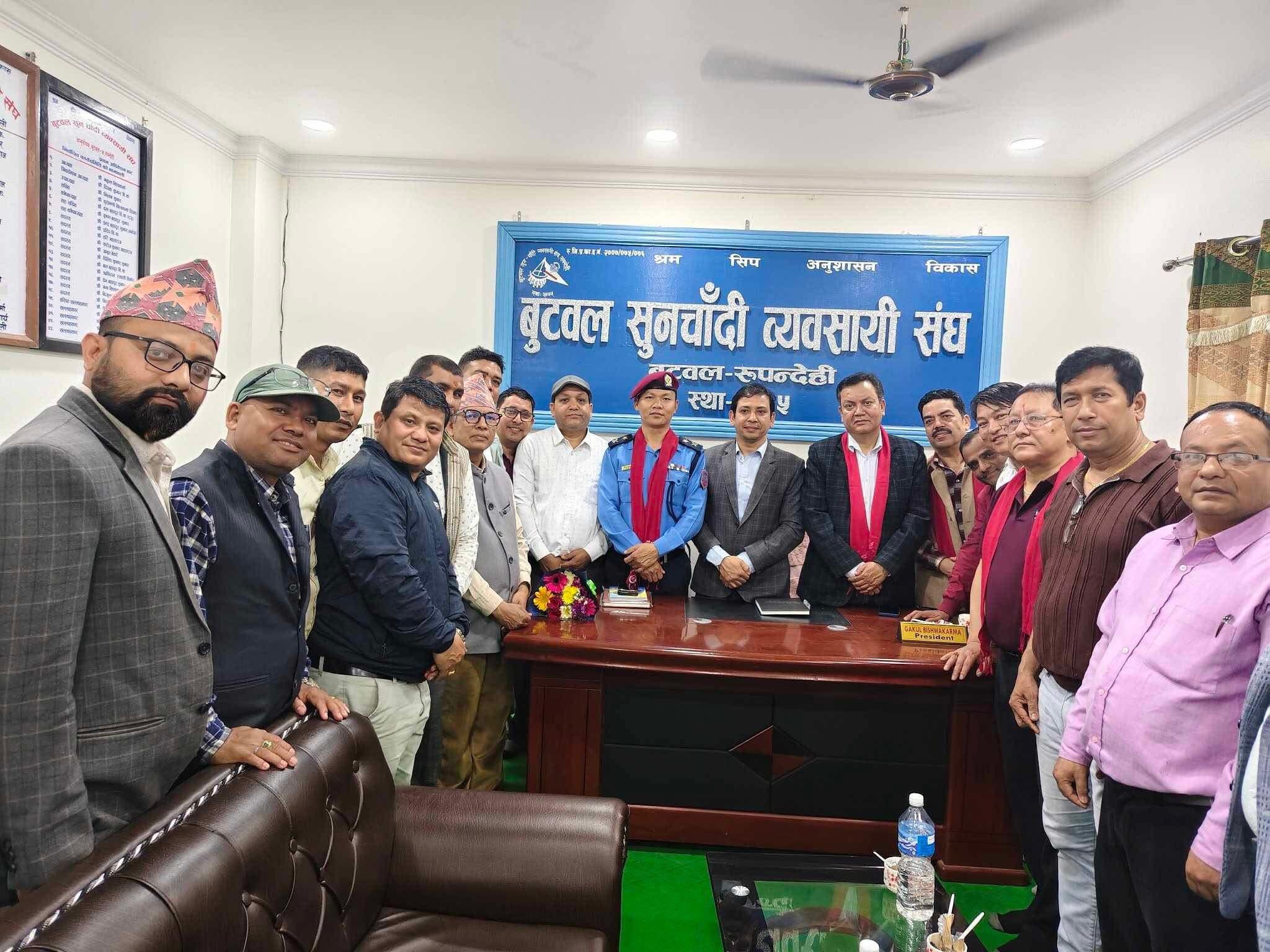 बुटवल । बुटवल सुनचाँदी व्यवसायी संघले नेपाल सुनचाँदी व्यवसायी महासंघको स्थापना दिवस एवं ईलाका प्रहरी कार्यालय बुटवलमा नयाँ आएका कार्यालय प्रमुख प्रहरी नायव उपरीक्षक ईन्द्र बहादुर रानालाईएक कार्यक्रमको आयोजना गरि स्वागत तथा भेटघाट कार्यक्रम सम्पन्न गरेको छ ।
