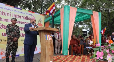 लुम्बिनी । विश्व सम्पदामा सूचीकृत लुम्बिनी क्षेत्रमा बौद्ध गुरुहरुले अहिले विश्व शान्ति कायम गर्न अन्तर्राष्ट्रिय समुदायको ध्यानाकर्षण गरेका छन् । अखिल नेपाल भिक्षु महासङ्घको आयोजनामा जारी चौथो त्रिपिटक वाचन समारोहमा सहभागी राष्ट्रिय तथा अन्तर्राष्ट्रिय बौद्ध धर्म गुरुहरुले विश्व शान्ति तथा मानव कल्याणका लागि गरेको कामनाले सबैको ध्यानाकर्षण गराएका हुन् । समारोहमा नेपाल, भारत, श्रीलङ्का, कम्बोडिया, थाइल्याण्ड, चीन, कोरीया, जापानलगायत १६ देशका लामा, बौद्ध भिक्षुभिक्षुणी गरी करिब दुई हजारको सहभागिता रहेको छ ।