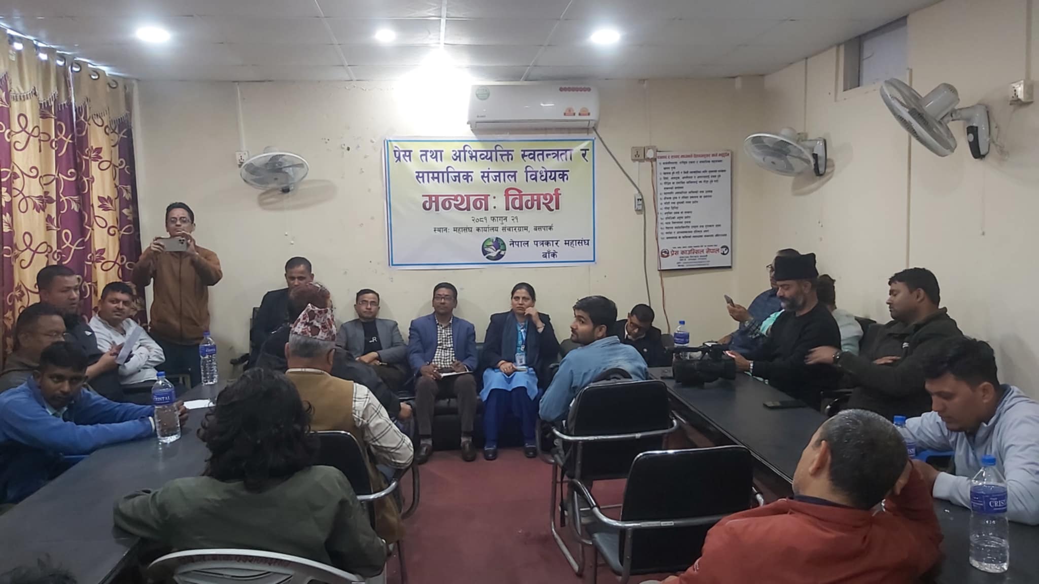 पत्रकार महासंघ बाँके शाखाले राखेको प्रेस तथा अभिव्यक्ति स्वतन्त्रता र समाजिक सञ्जाल विषयक बिचार मन्थन कार्यक्रममा बोल्ने वक्ताहरुले सामाजिक सञ्जाल नियमन आवश्यक भएपनि त्यसका नाममा अभिव्यक्ति स्वतन्त्रतामाथि नै सरकारले धाबा बोल्न खोजेको आरोप लगाए । लोकतन्त्रकै लागि अनवरत लडेका राजनीतिक दलहरु नै अभिव्यक्ति स्वतन्त्रताको बिपक्षमा देखिनु निन्दनिय रहेको वक्ताहरुले औल्याए ।