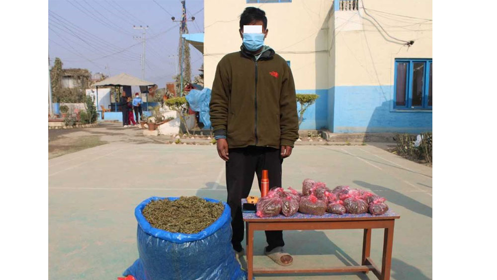 निलो प्लाष्टिकमा खुल्ला तथा सानो पोका बनाई राखेको गाँजा एकै ठाउँमा मिसाई तौल गर्दा प्लाष्टिक बाहेक १० केजी र सोही गाजाँ बिक्री वितरण प्रयोजनका लागी राखिएको हाते काँटा (तराजु) बरामद भएको प्रहरप्ले जनाएको छ ।