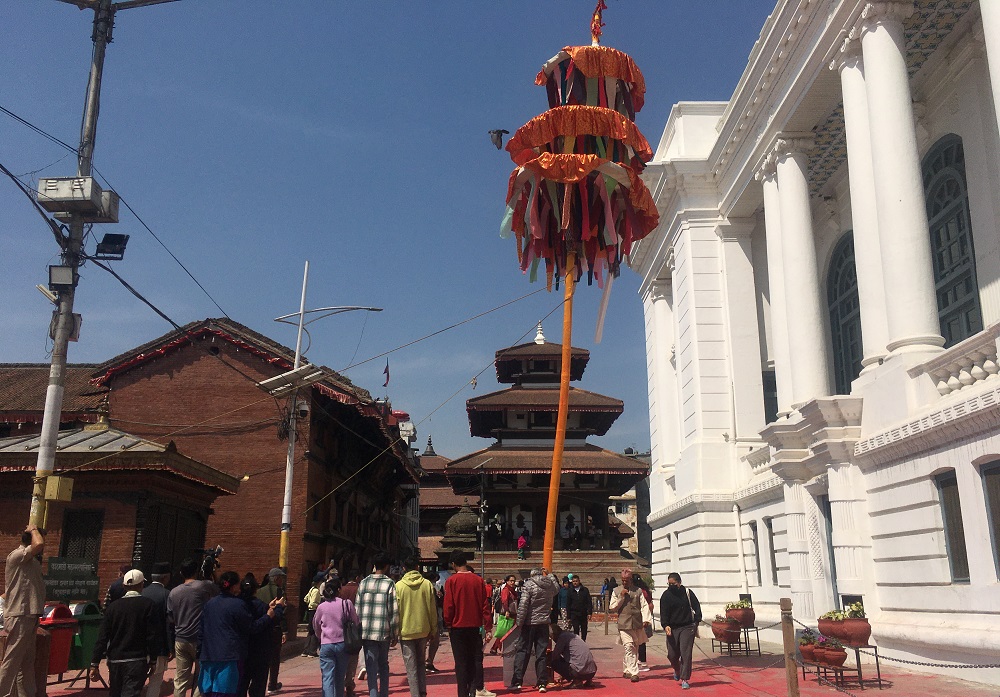 तीन तले छत्र र त्यसमा रंगीचंगी कपडाका टुक्राहरु झुण्डिएका करिब ३० फीट अग्लो चीरलाई ठड्याइएको छ ।