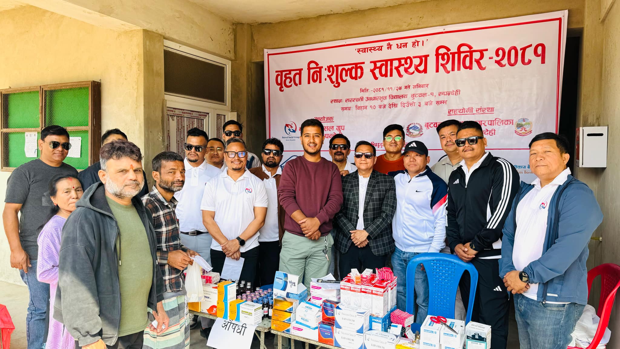 बुटवल । बुटवल सोसल ग्रुपले बुटवलमा बृहत निःशुल्क स्वास्थ्य शिविर सम्पन गरेको छ । स्वास्थ्य नै धन हो भन्ने उद्देश्य सहित बुटवल उपमहानगरपालिका वडा नं। १ मा आयोजना गरिएको शिविरमा २ सय ५६ जनाले स्वास्थ्य चेकजाँच तथा निःशुल्क औषधी वितरण गरिएको थियो ।