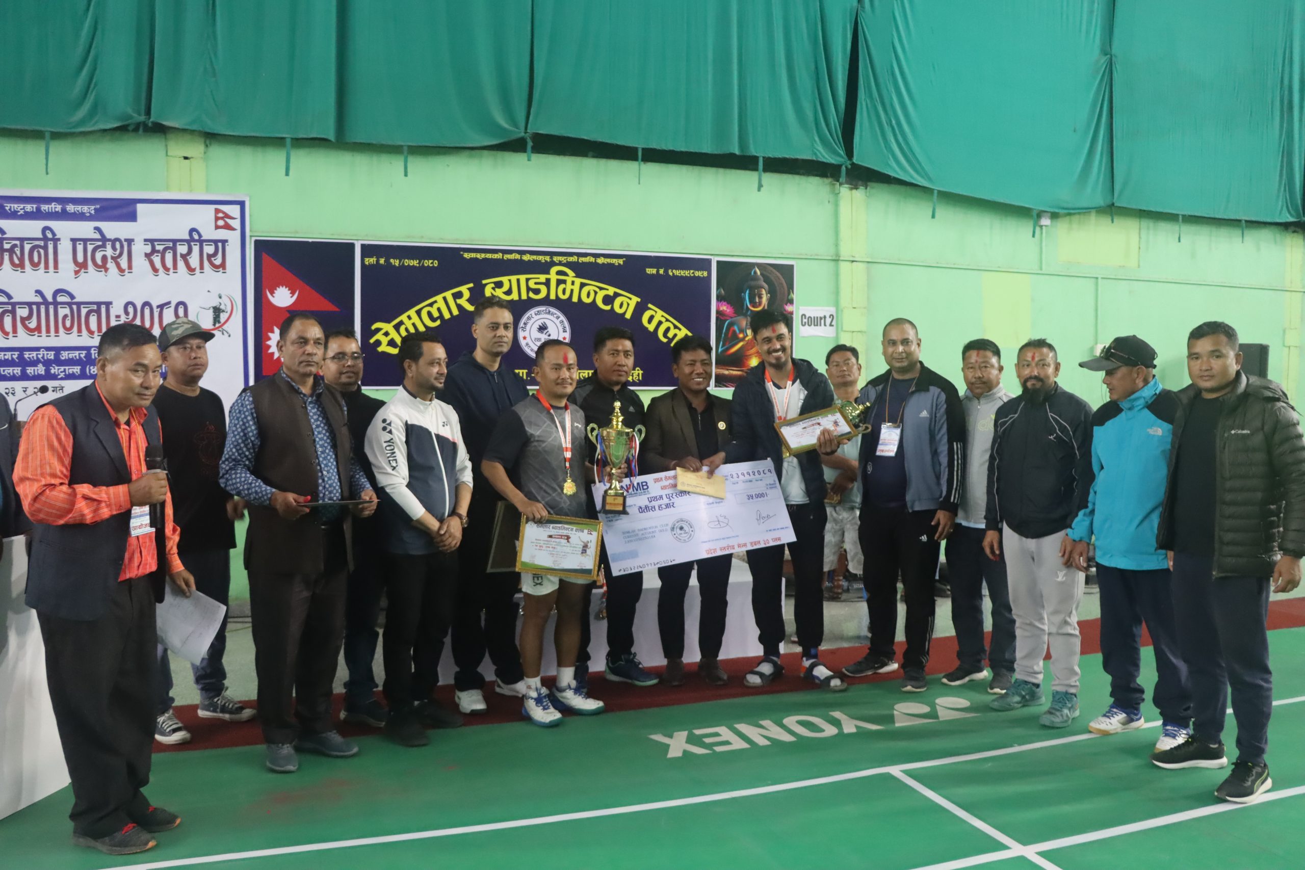 उपाधिसँगै विजेताले नगद ४१ हजार रुपैयाँ, कप, मेडल, प्रमाणपत्रबाट पुरस्कृत भए । उपविजेता लाफा समुहकै विवेक न्यौपाने र मनसुन थापाको जोडी भने नगद २५ हजार रुपैया, कप, मेडल, प्रमाणपत्रमा चित्त बुझाए । प्रतियोगितामा गुल्मी फिट एण्ड फाईनका जेनिश शेरचन र अनिस थापाको जोडी तथा सेमलार ब्याडमिन्टनका हिमान्सु कुंवर र लक्ष्मण रानाको जोडी तृतीय हुँदै नगद ७ हजार ५ सय रुपैयाँ, कप, मेडल, प्रमाणपत्रबाट पुरस्कृत भए ।