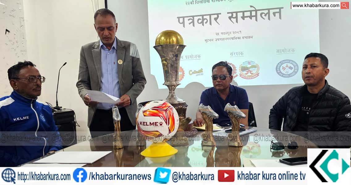 बुटवल । नेपालकै प्रतिष्ठित फुटबल प्रतियोगिताको रुपमा हेरिदै आएको रुपन्देहीकै पुरानो गोल्डकप तिलोत्तमा गोल्डकप फुटबल प्रतियोगिता चैतको पहिलो सातादेखि हुने भएको छ । बुटवल उपमहानगरपालिकाको संरक्षक तथा यशोदा फुड्स प्रालि र त्रिमुर्ति ईण्डस्ट्रिज प्रालिको मुख्य प्रायोजक, प्रदेश खेलकुद परिषद लुम्बिनी मुख्य सहयोगी संस्था रहेको प्रतियोगिताको २३ औं संस्करण चैत ९ गतेबाट शुरु हुने भएको हो ।