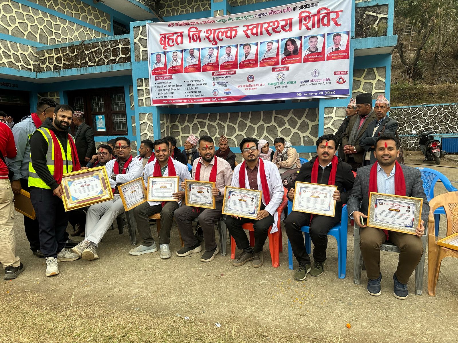 शिविर संचालनमा सहयोग गर्ने धनमुडा चौर समाज बुटवल, बुटवल हस्पिटल प्रा लि, हाम्रो स्वास्थ क्लिनिक, मल्टिस्टार, आले डेण्टल लगायतका संस्थाका प्रतिनिधिहरुलाई वडा कार्यालयको तर्फबाट सम्मान गरिएको थियो ।