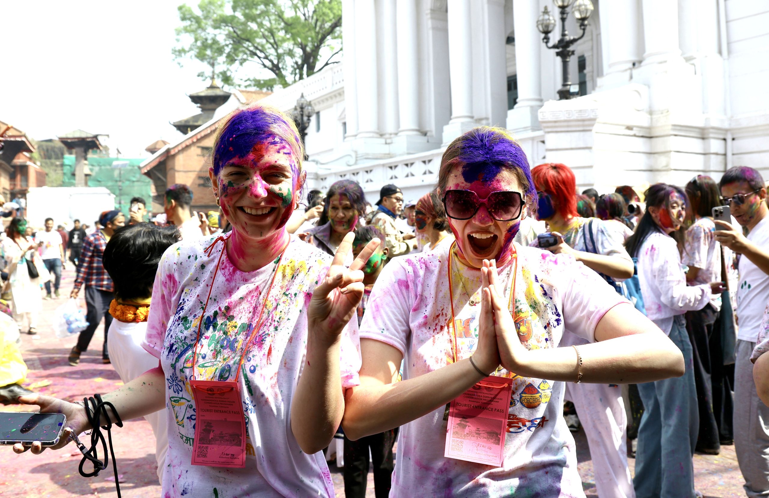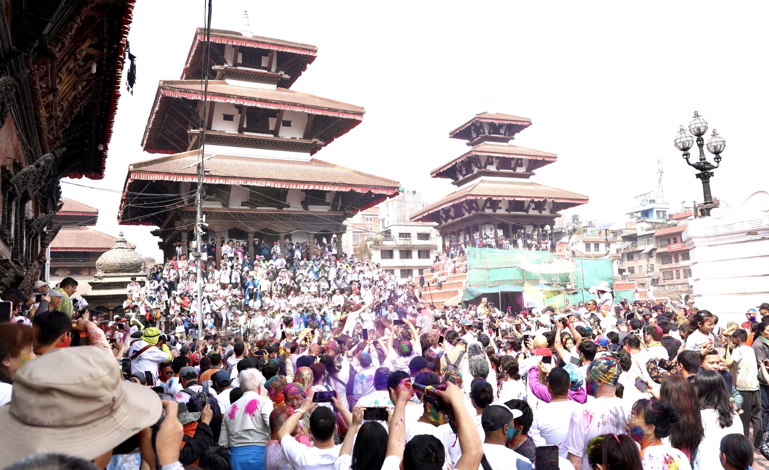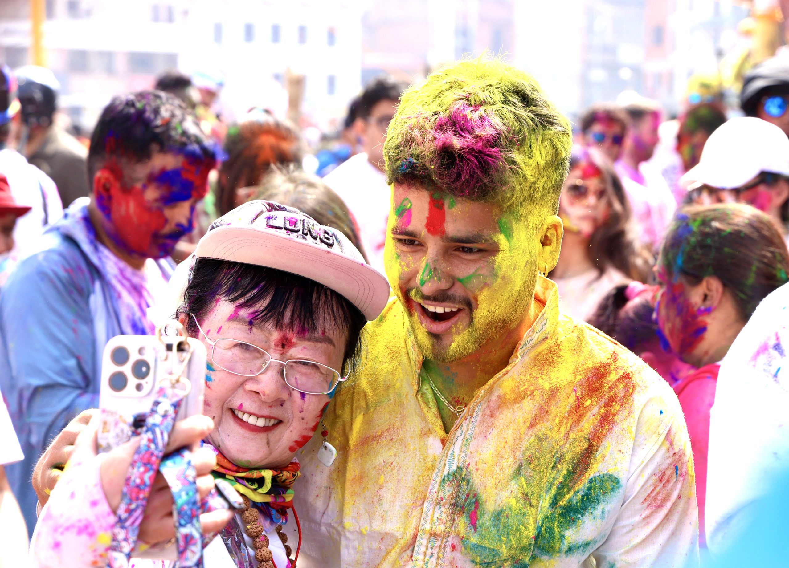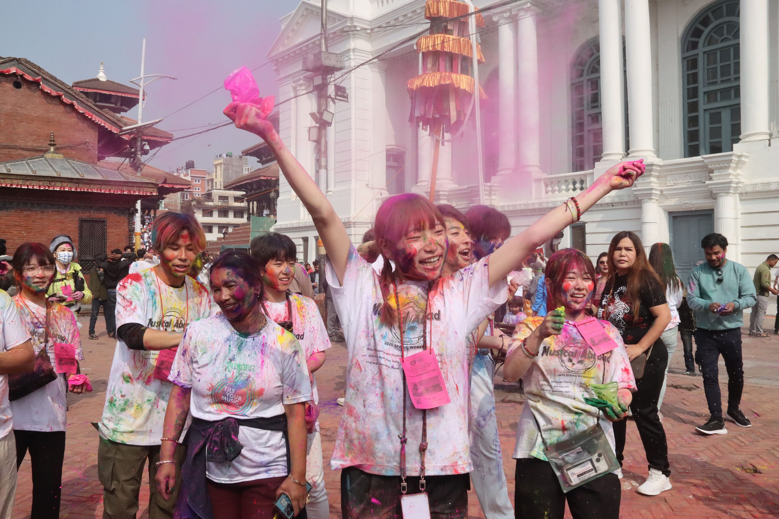काठमाडौं । फागुपूर्णिमाको अवसरमा आज नेपालको पहाडी क्षेत्रमा रंगको पर्व होली मनाइएको छ । यसै अवसरमा काठमाडौंको बसन्तपुरमा विदेशीहरूले होली मनाएका छन् । प्रकाशित मिति : २९ फाल्गुन २०८१, बिहिबार १ : ४४ बजे