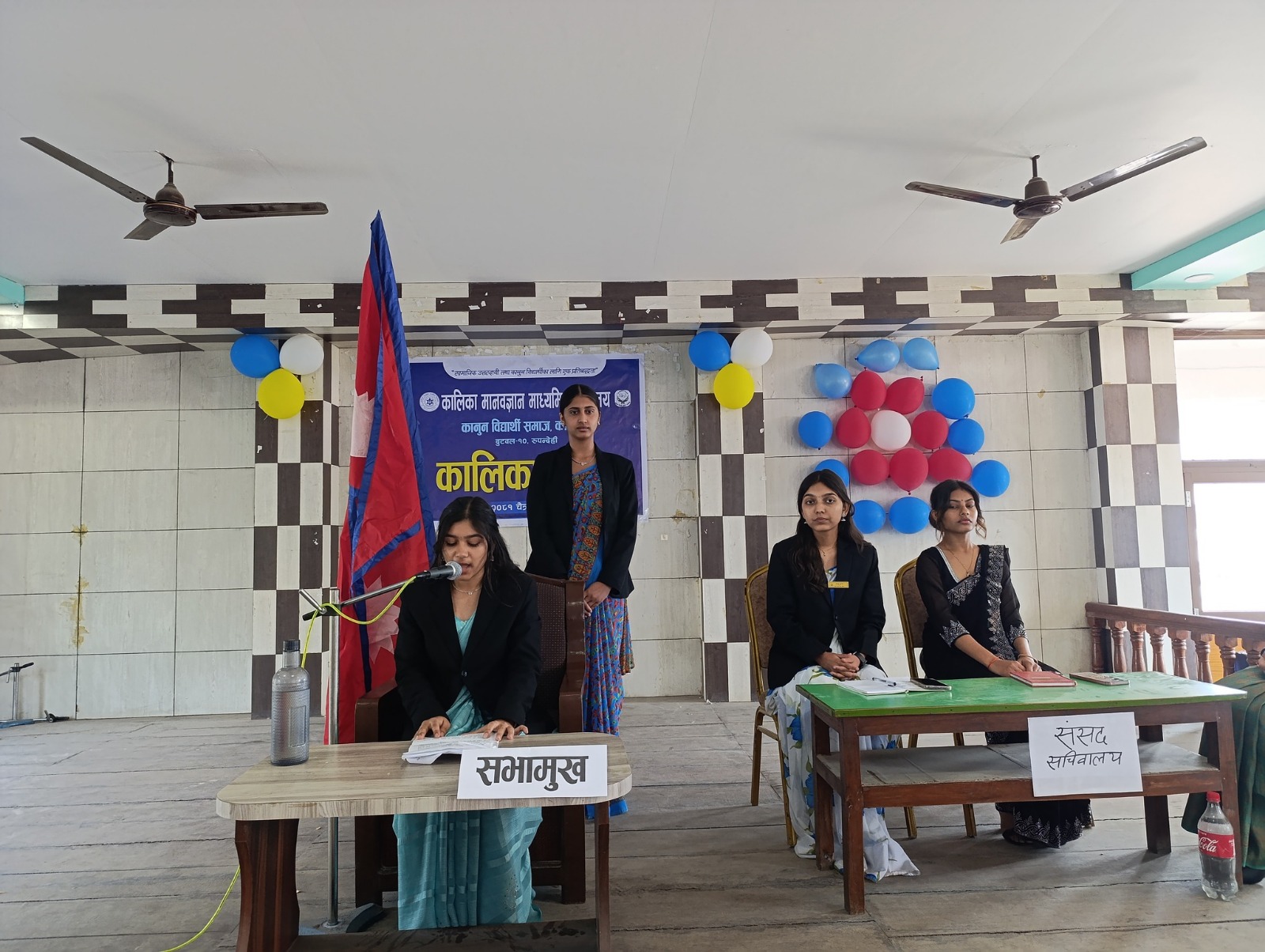 समाजका अध्यक्ष सन्जोग न्यौपानेको अध्यक्षतामा भएको कार्यक्रममा शिक्षा विकास तथा संमन्वय एकाई रुपन्देहीका प्रमुख माधव बन्जाडेको प्रमुख आतिथ्यता, विद्यालय व्यवस्थापन समितिका अध्यक्ष नित्यानन्द ज्ञवाली, विद्यालयका प्रधानाध्यापक दिनेश थापा, विद्यालयका शैशिक्षक सल्लाहकार तथा पुर्व प्रधानाध्यापक तथा बुटवल कालिका क्याम्पसका क्याम्प प्रमुख घनश्याम पाठक, बुटवल कालिका क्याम्पसका अध्यक्ष तथा कालिका मानवज्ञान माविकापुर्व विद्यालय व्यवस्थापन समिति अध्यक्ष होम ज्ञवालीको विशिष्ठ आतिथ्ययता रहेको थियो । कार्यक्रममा विद्यालयका सह प्रध्यानाध्यापक पिताम्बर बन्जाडे, व्यवस्थापन ईन्चार्ज शेरचन्द गिरी कानून तथा माविकी संकाय ईन्चार्ज विमल आत्रेय सहितका कानुन संकाय संयोजक युवराज कन्डेलको समेत आतिथ्यता सरेको थियो ।