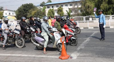 काठमाडौं । ट्राफिक प्रहरीले बूढानीलकण्ठ नगरपालिका क्षेत्रमा ट्राफिक नियमबारे जनचेतना फैलाउने उद्देश्यले ‘दुईपाङ्ग्रे सवारी चालकसँग दुई मिनेट’ अभियान सुरु गरेको छ ।