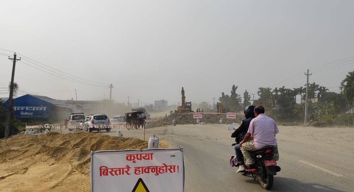 बुटवल । शीतलहरका कारण सडक चिप्लो बनेपछि पूर्व-पश्चिम राजमार्गअन्तर्गत दाउन्ने