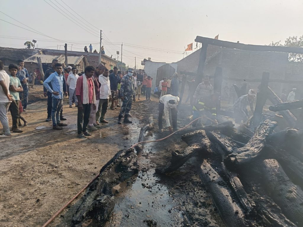नरैनापुरमा आगलागी, १७ घर जले, आगलागीको मौसम सुरुहुँदा पालिकाको दमकल ग्यारेजमा