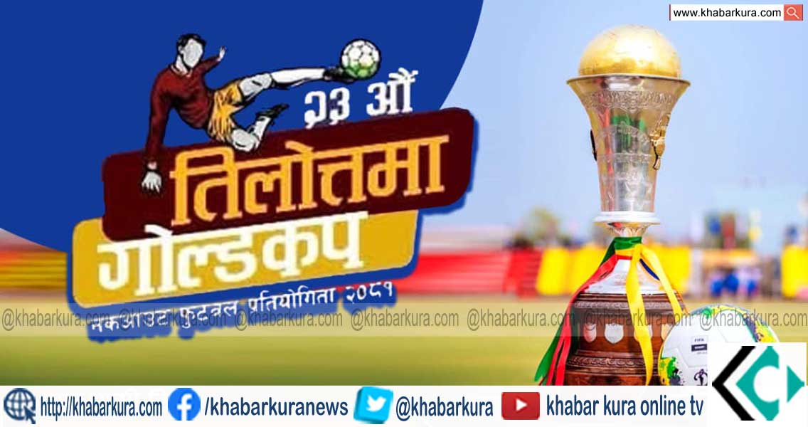 बुटवल । जारी २३ औं संस्करणको तिलोत्तमा गोल्डकपमा आज अन्तिम सेमिफाइनल खेल हुँदै छ । बुटवल-११ स्थित एन्फाटेक्निकल सेन्टरमा आज दिउँसो ३ बजे हुने खेलमा फाइनल प्रवेशका लागि मच्छिन्द्र फुटबल क्लब र चर्च ब्वाइज युनाइटेड क्बले प्रतिस्पर्धा गर्न छन् ।
