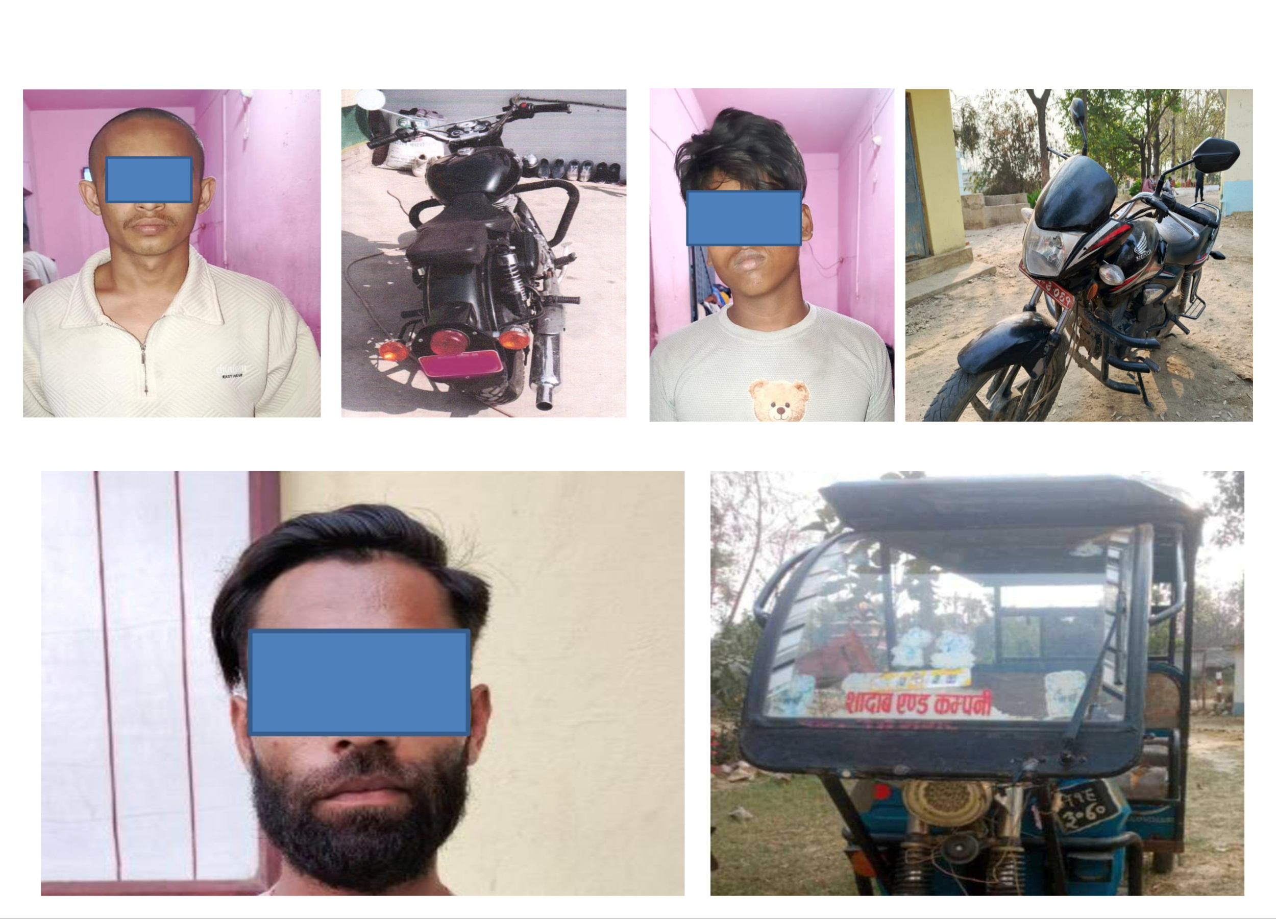 मोटरसाइकल र ई-रिक्सा चोरी गर्नेहरु सवारी साधन सहित पक्राउ