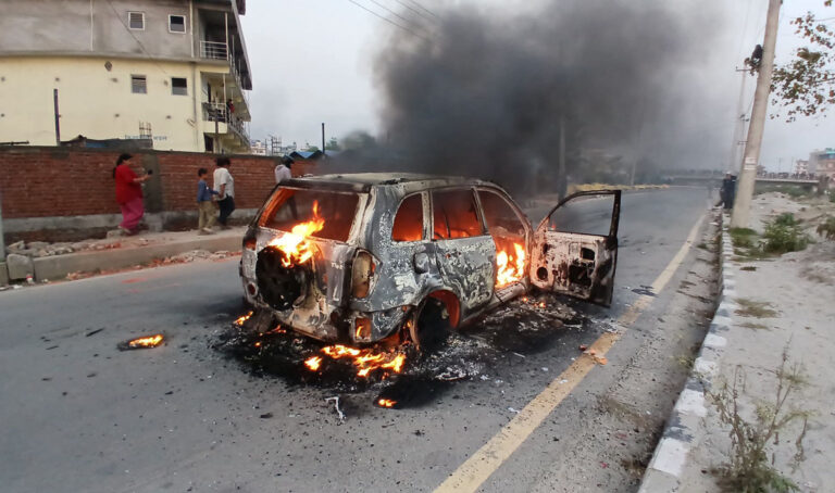 काठमाडौँ । गणतन्त्रको रक्षाको आन्दोलन र राजतन्त्रको पुनस्र्थापनाको आन्दोलनका बारेमा मौन बसेको राष्ट्रि स्वतन्त्र पार्टीका प्रमुख सचेतक सवार गाडीलाई राजावादीहरुले जलाइदिएका छन् । राजावादीहरूले रास्वपाका प्रमुख सचेतक सन्तोष परियार चढेको गाडी जलाइदिएका हुन् ।