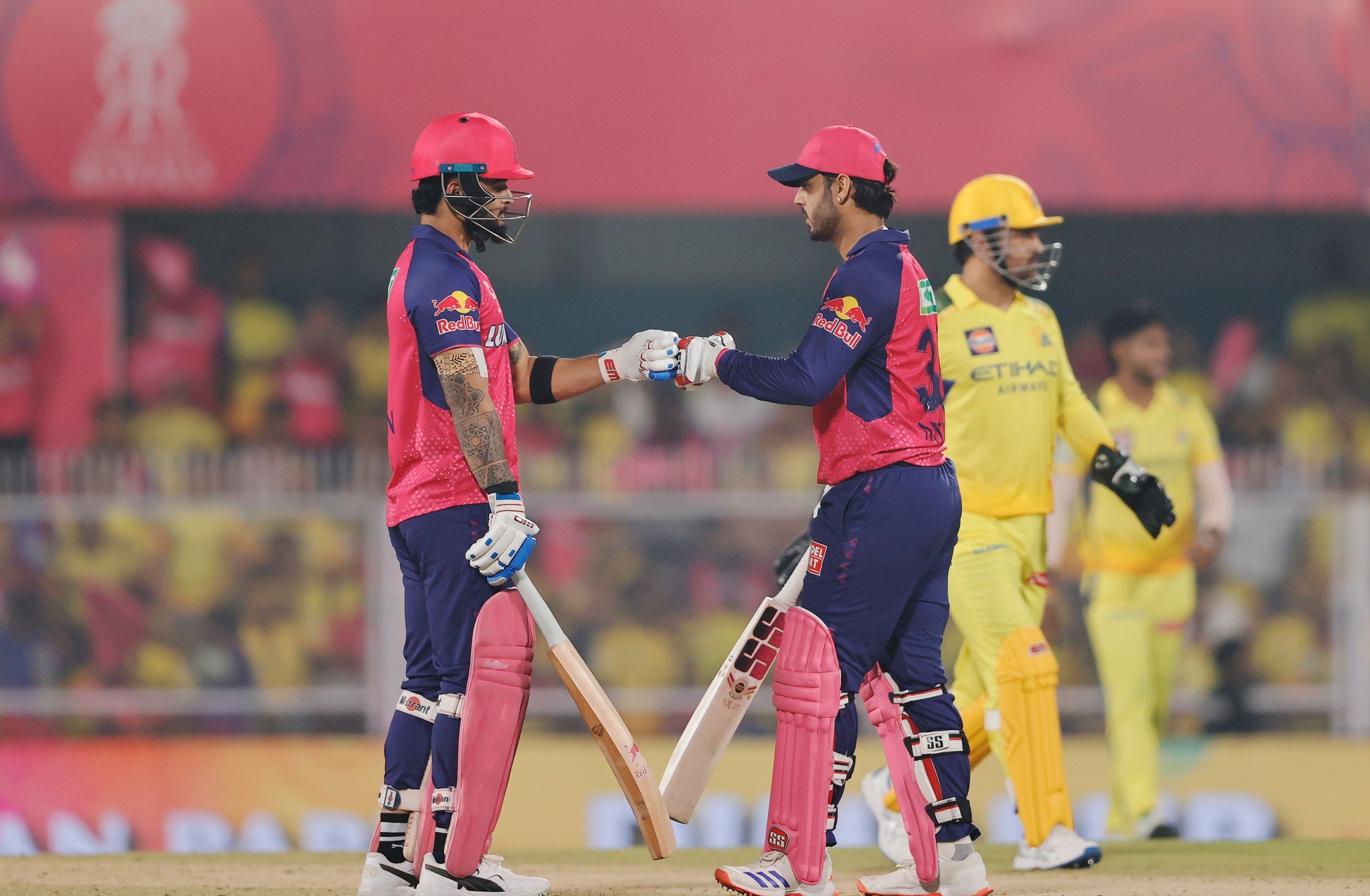 कप्तान रियान परागले २८ बलमा ३७ रनको योगदान गरे । चेन्नईका खालिल अहदम, नुर अहमद र नातिसा पाथिरानाले समान दुईदुई विकेट लिए । नुर अहदमले ३ खेलमा ९ विकेट लिइ सकेका छन् । घरेलु भूमिमा लगातार दोस्रो हारले चेन्नई सुरुवातमा नै अप्ठेरोमा परेको छ । लगातार दुई खेलमा पराजित राजस्थानले पहिलो जित दर्ता गरेको हो ।