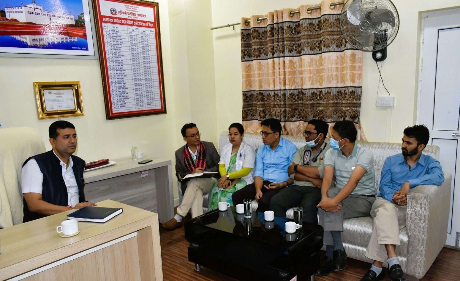 सिभिल अस्पताल काठमाडौंका निर्देशक डा. मोहनचन्द्र रेग्मीको नेतृत्वमा आएको टोलीले विहिबार र शुक्रबार दुई दिनसम्म लुम्बिनी अस्पतालको निरीक्षण गर्नुका साथै विभागीय प्रमुखहरुसँग छलफल गरेको छ ।