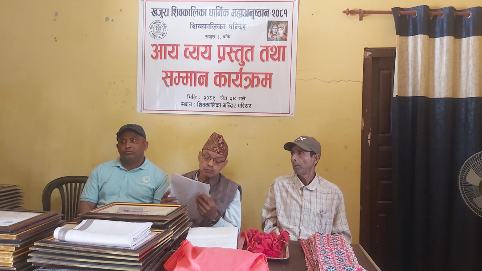 बाँकेको खजुरामा रहेको स्थानीय शिवकालिका मन्दिरको जग्गा मध्य कम्तीमा १ बिगाहा जग्गामा धार्मिक बाटिका निर्माणको सहयोगार्थ धार्मिक महा अनुष्ठान गरिएको हो ।