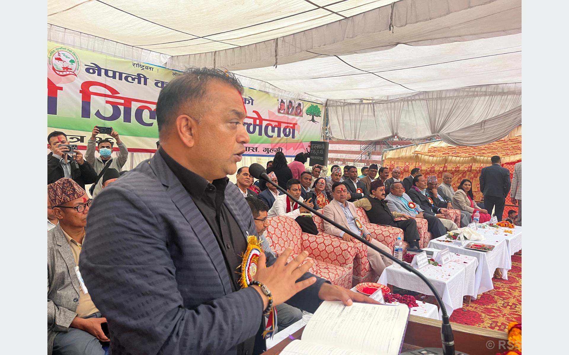 नेपाली कांग्रेस गुल्मीद्वारा आज सदरमुकाम तम्घासमा आयोजित तेस्रो जिल्ला सम्मेलनमा महामन्त्री थापाले गलत काम गर्ने जो कोही भए पनि त्यसले सजाय पाउन सकेमा मात्र नागरिकमा भरोसा सिर्जना हुने बताए । उनले प्रधानमन्त्री तथा मन्त्रीहरुले खुरुखुरु जनताको हितका लागि काम गर्नमा लाग्नुपर्ने उल्लेख गर्दै राम्रो कामको प्रचार गर्न आफूहरु तयार रहेको बताए ।