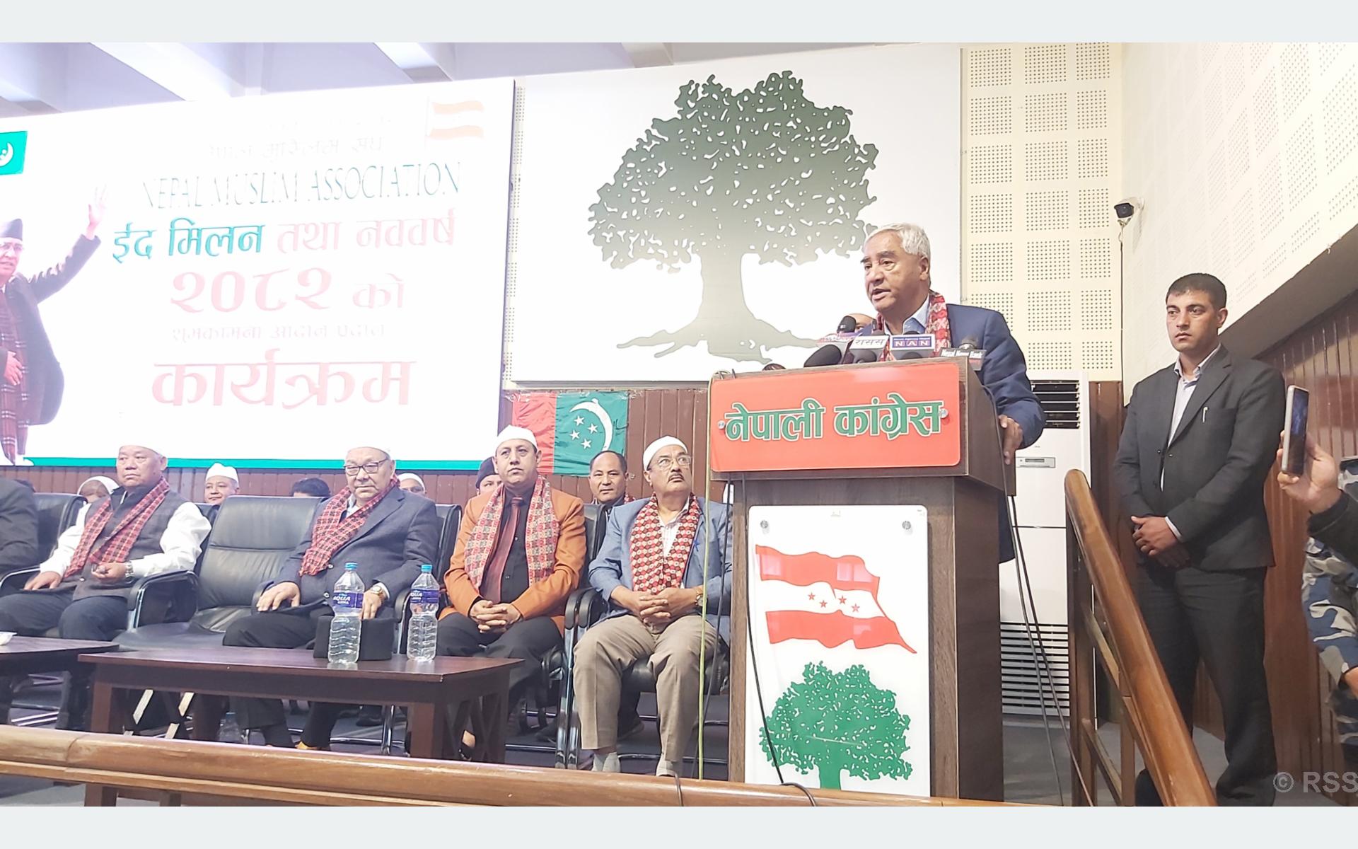 “मुस्लिम समुदायमा धेरै सहयोगी दाजुभाई दिदीबहिनी हुनुहुन्छ, मुलुककले अङ्गीकार गरेको समावेशी, समानुपातिक शासन व्यवस्थाले सबै जात र समुदायलाई समेटेको र यसलाई अझ समावेशी बनाउन पार्टी सचेत रहेको छ ।’ सभापति देउवाले भने ।