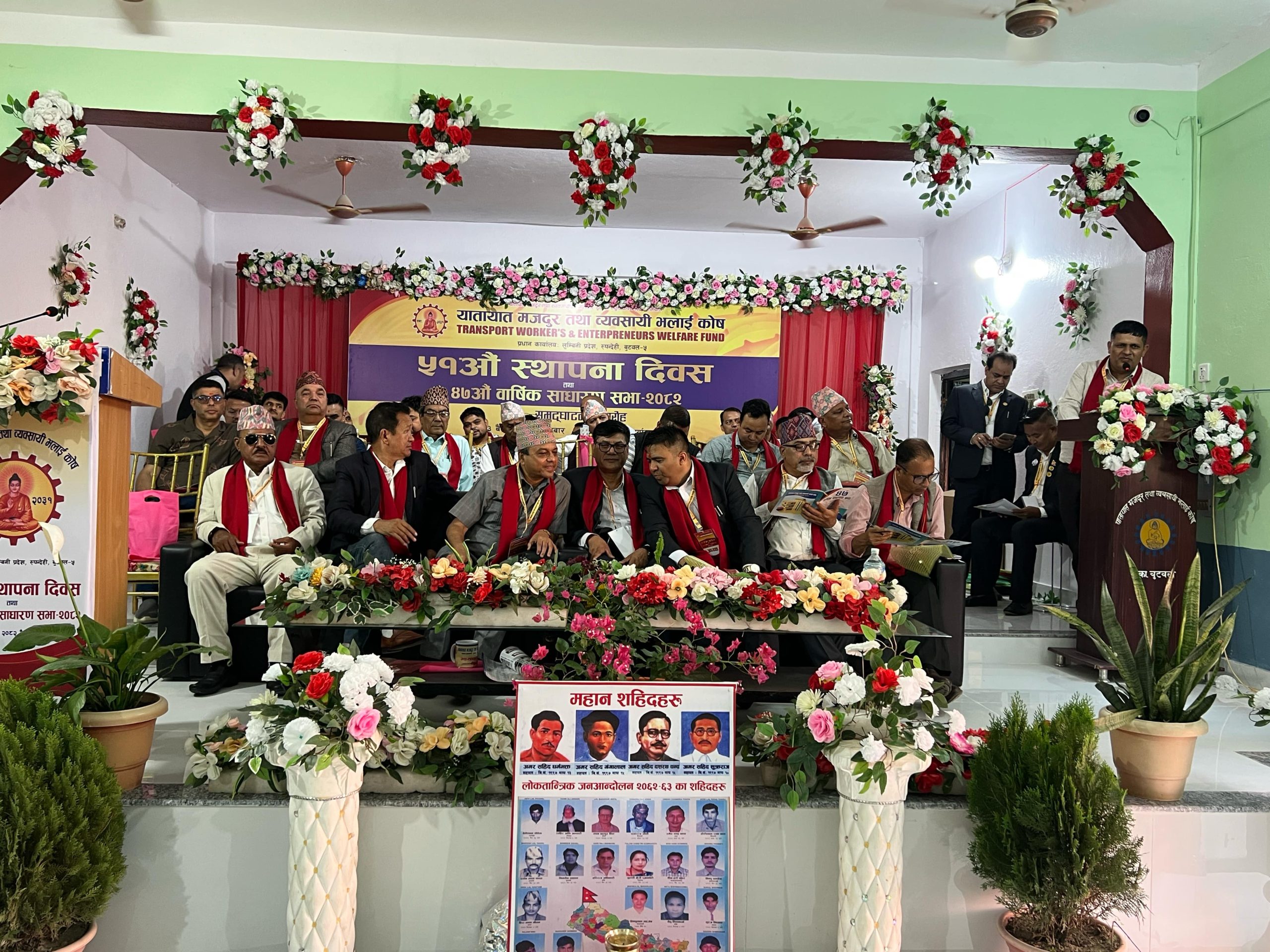कार्यक्रममा सवारी साधनमा लामो सेवा गरी ५८ वर्ष उमेर हद पार गरेका चालक पशुपति खरेललाई आर्थिक सहयोग गरिएको छ । यसैगरी सवारी दुर्घटनामा मृत्यु भएका कृष्णलाल मरासिनीको परिवारलाई ५० हजार रुपैयाँबाट सम्मान गरिएको छ । साधारणसभाले अध्यक्ष दिनेश फुल्लेल, महासचिव योग गुरुङ र कोषाध्यक्ष प्रकाशकुमार नेपालको प्रतिवेदन पारित गरेको छ ।