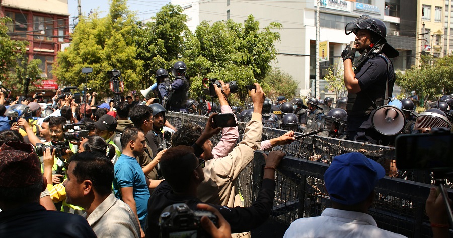 राप्रपाका नेता कार्यकर्ताहरु नयाँ वानेश्वर क्षेत्रमा जम्मा भएर निषेधित क्षेत्र नजिकै प्रदर्शन गरिरहेका छन् । उनीहरुले निषेधित क्षेत्र तोड्न प्रयास गरेपछि केहीबेर प्रहरीसँग धकेलाधकेल समेत भएको छ । प्रहरीले निषेधित क्षेत्र नतोड्न माइकिङमार्फत प्रदर्शनकारीलाई सम्झाउने प्रयास गरेको छ ।