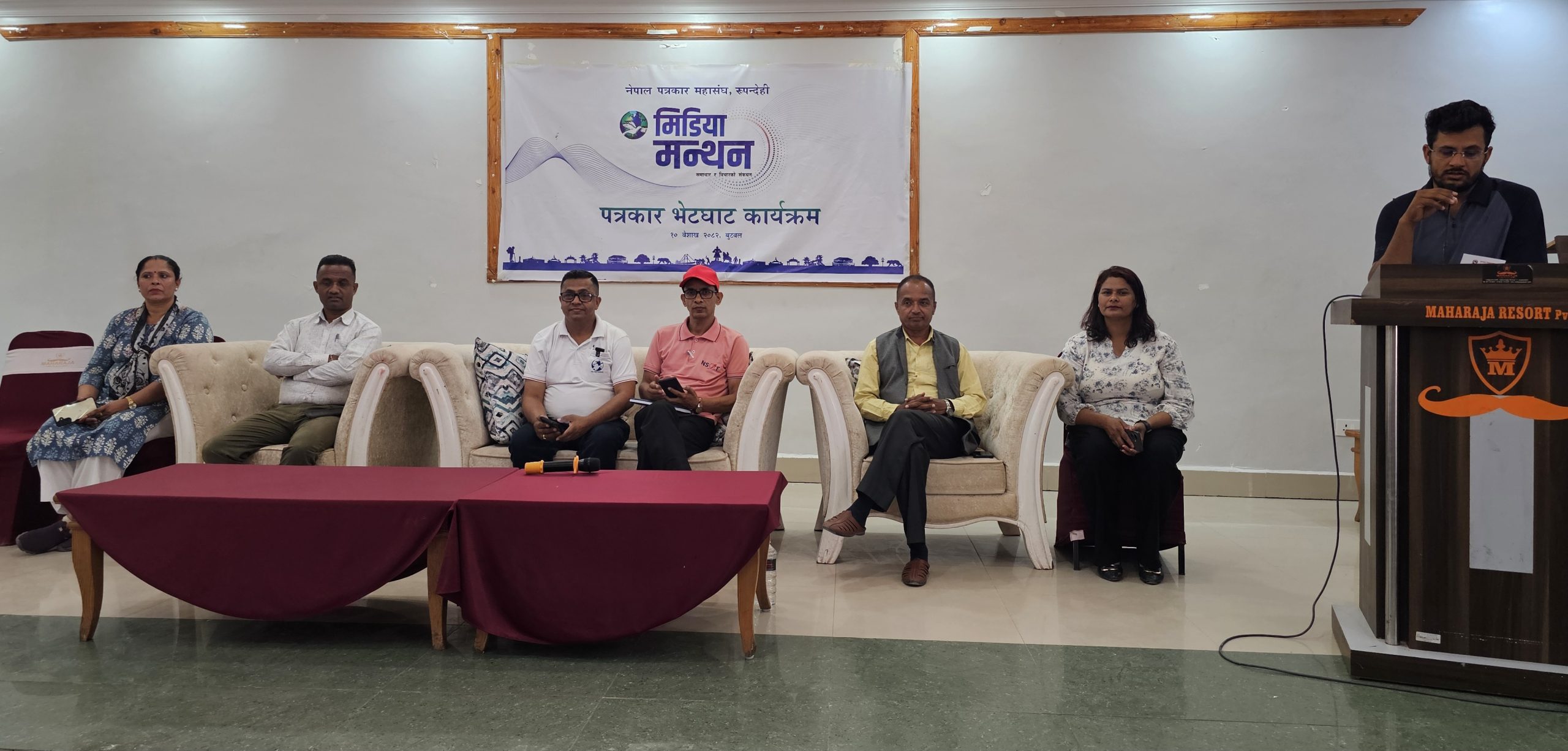 मिडिया मन्थनको बारेमा पत्रकार सम्मेलन गरी नेपाल पत्रकार महासंघ रुपन्देही शाखाले पत्रकार सम्मेलनगरी जानकारी गराएको छ । बिहीबार दिउँसो आयोजना हुने उक्त मिडिया मन्थन कार्यक्रममा विभिन्न सञ्चार क्षेत्रको विषय बहस हुने बताइएको छ ।