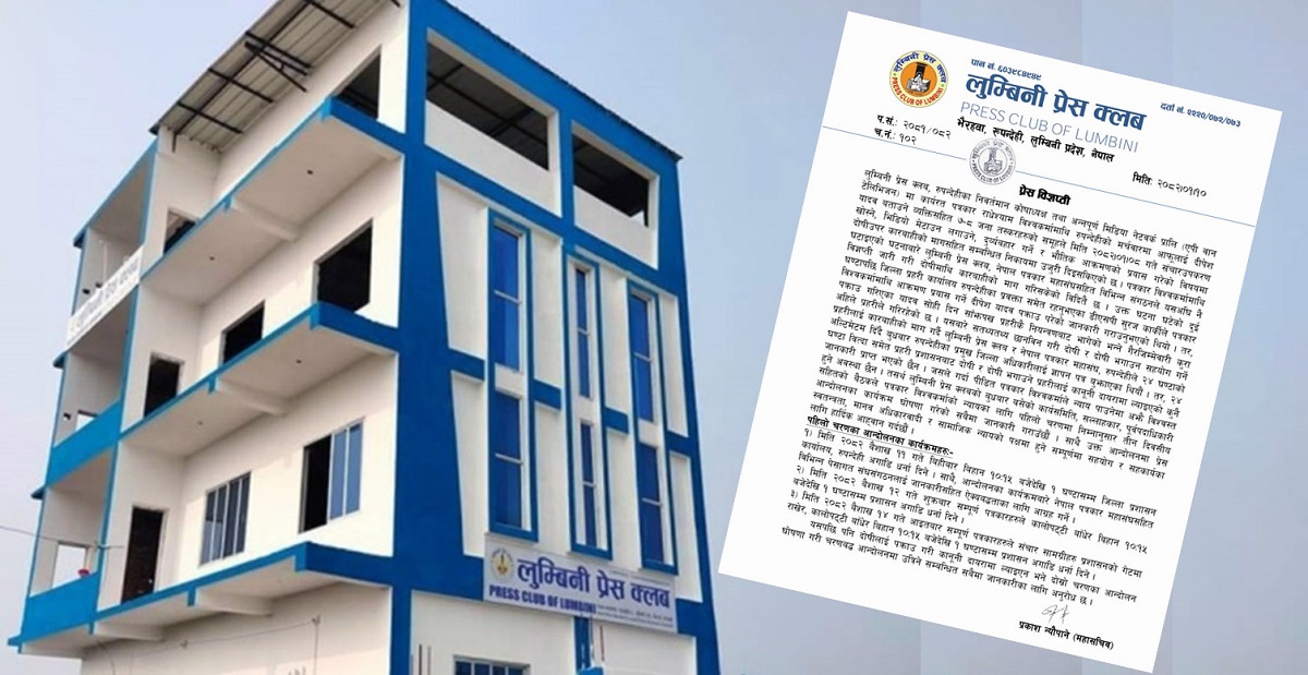 क्लबले दोषीउपर कारबाहीको मागसहित सम्बन्धित निकायमा उजुरी दिइसकिएको जनाएको छ । पत्रकार विश्वकर्मामाथि घटाइएको घटनाबारे लुम्बिनी प्रेस क्लब, नेपाल पत्रकार महासंघ, रुपन्देही शाखा, महासंघ लुम्बिनी प्रदेश, महासंघ केन्द्रिय समितिसहित विभिन्न संघसंगठनले यसअघि नै विज्ञप्ती जारी गरी दोषीमाथि कारबाहीको माग गरिसकेका छन् । उक्त घटना घटेको दुई घण्टापछि जिल्ला प्रहरी कार्यालय रुपन्देहीका प्रवक्ता समेत रहेका डीएसपी सुरज कार्कीले पत्रकार विश्वकर्मामाथि आक्रमण प्रयास गर्ने दीपेश यादव पक्राउ परेको जानकारी गराएको तर, पक्राउ गरिएका यादव सोही दिन साँझपख प्रहरीकै नियन्त्रणबाट भागेको भन्ने गैरजिम्मेवारी कुरा अहिले प्रहरीले गरिरहेको विज्ञप्तीमा उल्लेख छ ।