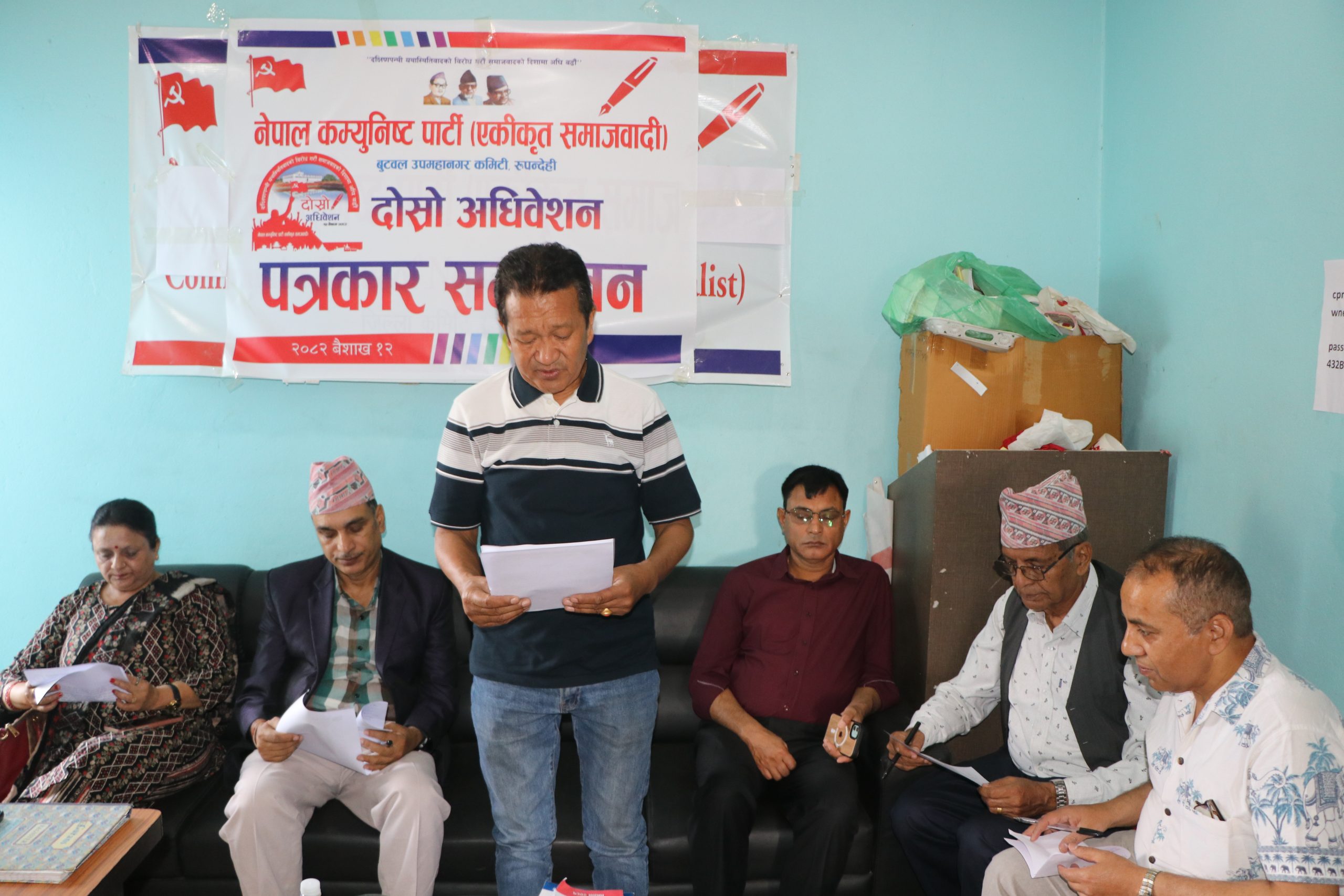 उक्त अवसरमा बुटवल उपमहानगरपालिकाका १९ वटा वडाबाट ६५४ प्रतिनिधिहरुले पार्टीको नेतृत्व चयन गर्ने जानकारी दिइएको थियो । अध्यक्ष, उपाध्यक्ष, सचिव, उपसचिव २ जना गरी ६३ सदस्यीय उपमहानगर कमिटि चयन गरिने सचिव लोकराज शर्माले बताए । पत्रकार सम्मेलनमा स्वागत गर्दै पार्टीका नगरउपाध्यक्ष रुक्माङगत घिमिरेले उपमहानगर कमिटिको अधिवेशनको सम्पूर्ण तयारी पूरा भएको बताए ।