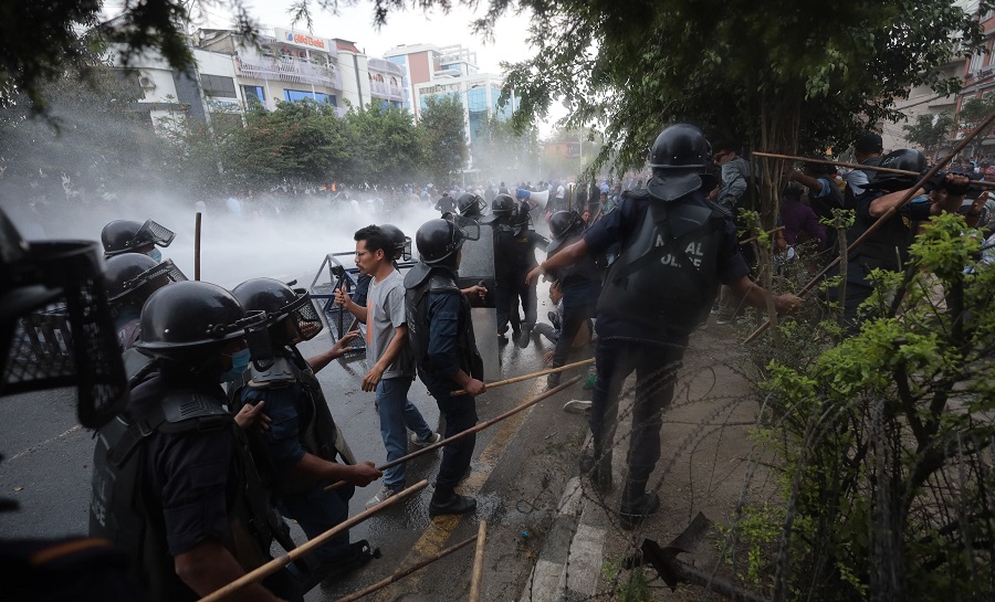 आन्दोलनकारी शिक्षकहरुले निषेधित क्षेत्र तोड्न खोजेपछि प्रहरीले बल प्रयोग गरेको थियो । झडपका क्रममा प्रहरीले पानीको फोहोरा प्रहार गरेको छ । प्रहरीले बल प्रयोग गरेपछि शिक्षकहरुले पनि ढुंगा प्रहार गरेका छन् । प्रहरीको लाठी प्रहारबाट १० जनाभन्दा बढी शिक्षकहरु घाइते भएका छन् ।