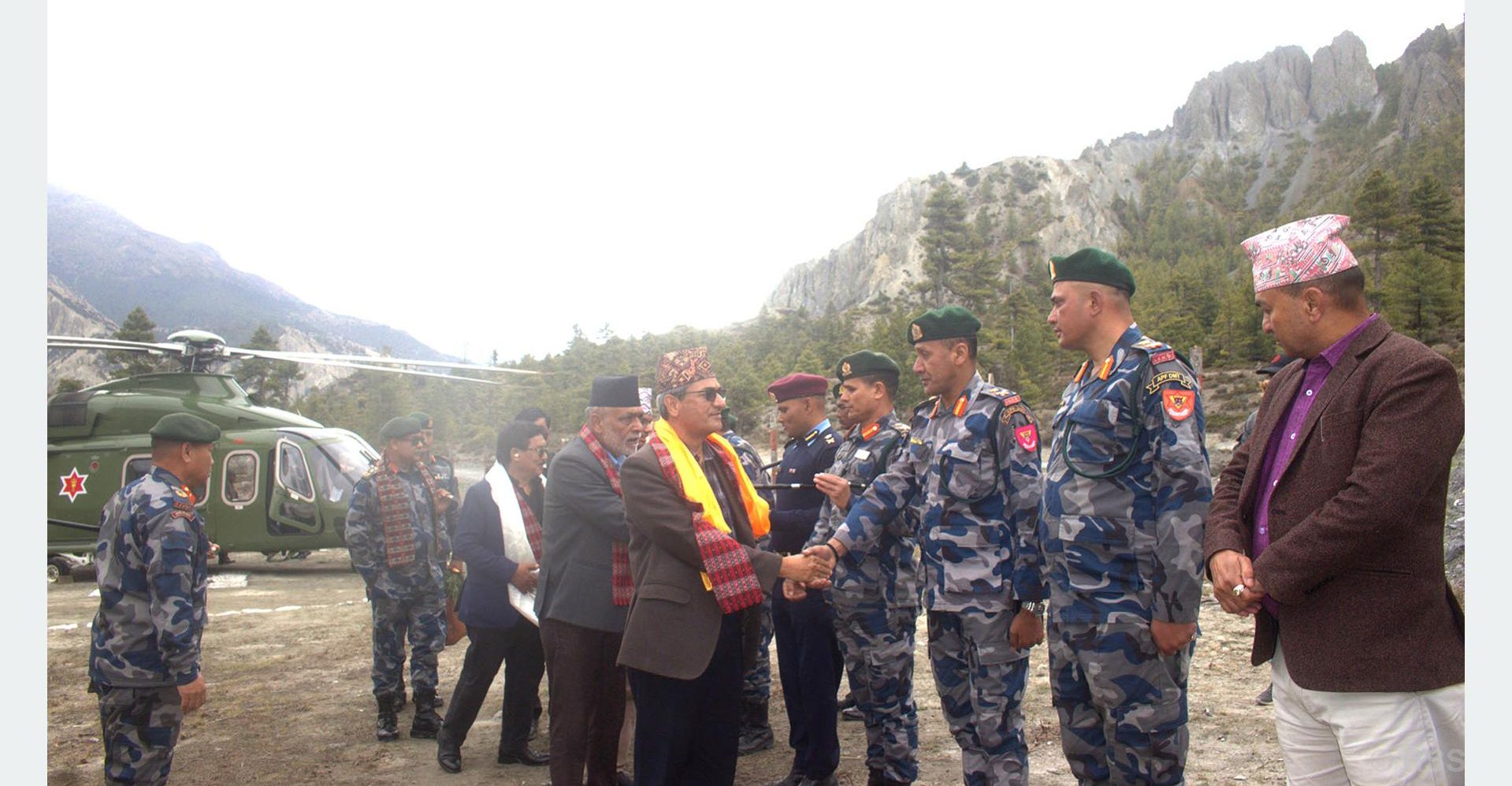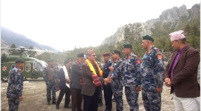 मनाङ । गृहमन्त्री रमेश लेखकले हरेक स्थानमा हुने विपद्मा उद्धार र सीमा सुरक्षामा सशस्त्र प्रहरी बल अब्बल बन्दै गएको बताएका छन् । आज यहाँ आयोजित सशस्त्र प्रहरी बल नेपाल पर्वतीय उद्धार तालिम शिक्षालयबाट प्रशिक्षित प्रशिक्षार्थीको दीक्षान्त समारोहमा उनले विपद्मा उद्धार गर्ने कार्यले देश तथा विदेशका मानिसको विश्वास र भरोसा बढाउँदै गएको बताएका हुन् ।