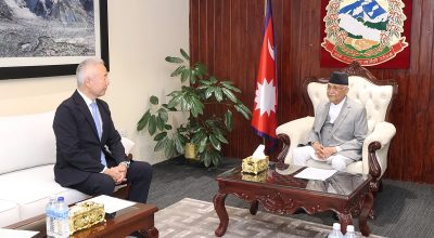 काठमाडौं। प्रधानमन्त्री केपी शर्मा ओलीसँग नेपालका लागि जापानका राजदूत माइदा तोरुले आज शिष्टाचार भेट गरेका छन्।