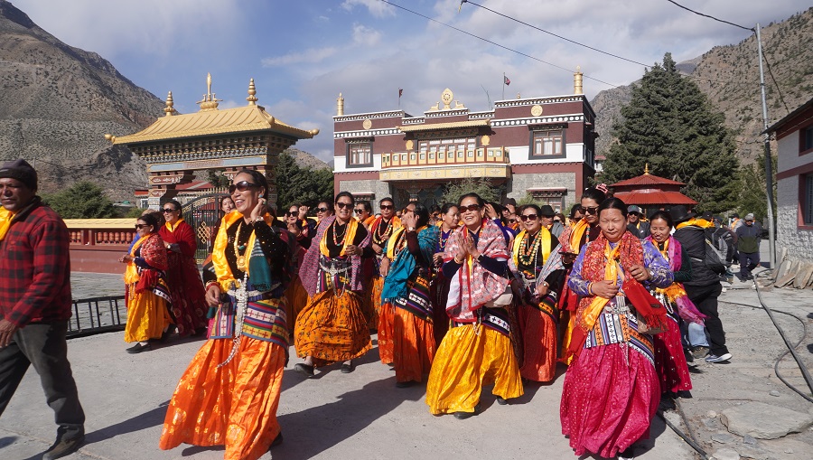 यसैबीच, सोमबार मुस्ताङको जोमसोममा थच्याङ संस्कृति झल्किने गरी परिक्रमा गरिएको छ । समाजका ५७ वर्ष कटेका व्यक्तिको बिदाइमा कुलदेवतालाई सम्झदै ‘जीवनको गतिशील कर्मबाट मुक्त भयो’ भन्दै ताङ्वे सांस्कृतिक गुरुङ भाषामा गीत गाउँदै पुरुष र महिलाले गाउँ परिक्रमा गराइएको हो ।