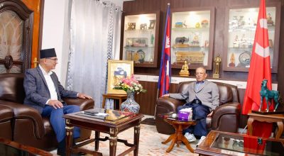 काठमाडौं । उपप्रधान एवं अर्थमन्त्री विष्णु पौडेलले पूर्वप्रधानमन्त्री एवं नेपाल कम्युनिष्ट पार्टी (माओवादी केन्द्र)का अध्यक्ष पुष्पकमल दाहाल ‘प्रचण्ड’ सँग भेट गरेका छन् ।