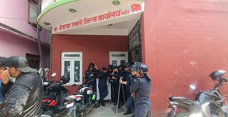 कुश्मा । नेकपा एमाले पर्वतको पार्टी कार्यालयमा २ वटा गुटका युवा सङ्घका नेता कार्यकर्ताबिच कुटाकुट भएको छ । पर्वतबाट एमाले केन्द्रमा प्रतिनिधित्व गर्ने गणेश तिमिल्सिना र पदम गिरी समूहका युवा बीच कुटाकुट भएको बताइएको छ ।