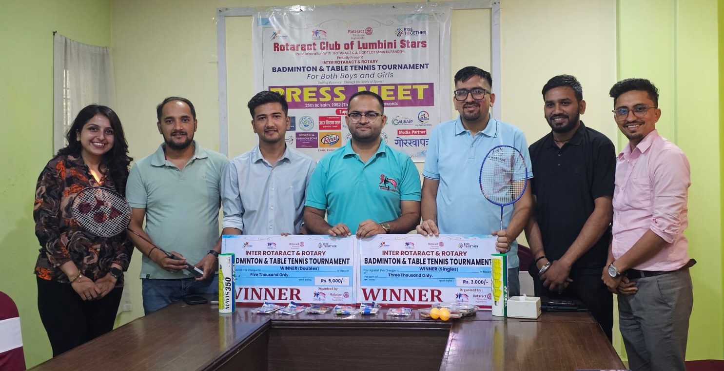 बुटवल । रोट्रयाक्ट क्लब अफ लुम्बिनी स्टार्स र रोट्रयाक्ट क्लब अफ तिलोत्तमा रुपन्देहीको संयुक्त आयोजनामा महिला पुरुष ब्याडमिन्टन र टेबल टेनिस प्रतियोगिता हुने भएको छ । यही वैशाख २७ गते शनिबार देविनगर व्याडमिन्टन क्लबमा प्रतियोगिता आयोजना हुने जानकारी गराएको छ ।