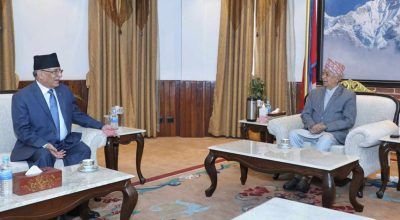 काठमाडौं । संसदमा प्रमुख प्रतिपक्षदलका नेता एवं नेपाल कम्युनिष्ट पार्टी (माओवादी केन्द्र) का अध्यक्ष पुष्पकमल दाहाल ‘प्रचण्ड’ र राष्ट्रपति रामचन्द्र पौडेलबीच भेटवार्ता भएको छ ।