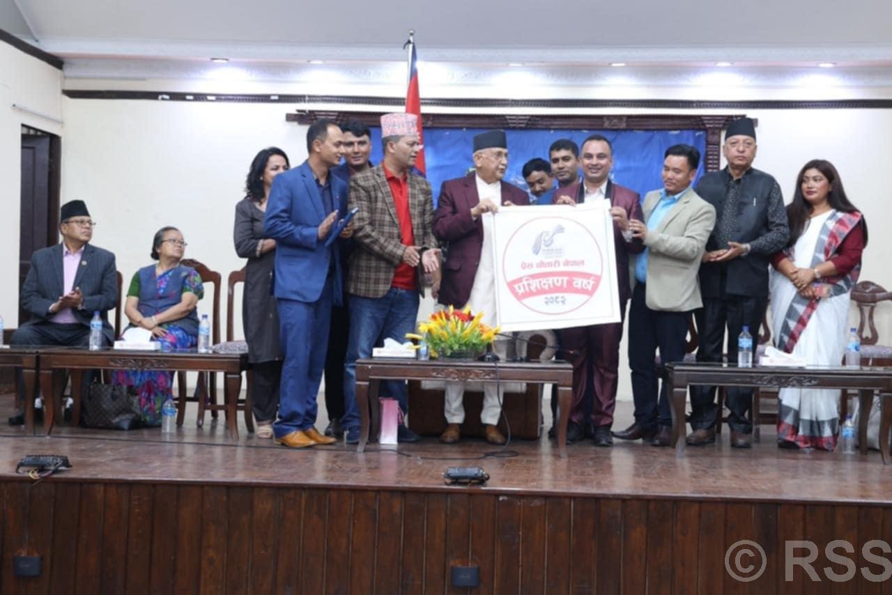 मङ्गलबार साँझ बालुवाटारमा आयोजित कार्यक्रममा नेकपा (एमाले)का अध्यक्ष एवम् प्रधानमन्त्री केपी शर्मा ओलीले लोगो सार्वजनिक गरेका हुन् । प्रेस चौतारी नेपालले २०८२ लाई प्रशिक्षण वर्षको रूपमा लिएको छ । बालुवाटारमा आयोजित जनसङ्गठनका नवनिर्वाचित पदाधिकारीहरूलाई बधाई दिन आयोजित कार्यक्रममा प्रधानमन्त्री ओलीले लोगो सार्वजनिक गर्दै मर्यादित र व्यावसायिक पत्रकारिता क्षेत्रको विकास र पत्रकारको सशक्तीकरणका लागि प्रेस चौतारीले थालेको यो अभियानको प्रशंसा गरे । “झूटा कुरालाई होइन, सत्यलाई साथ दिनुस्, तथ्य राखेर सत्यलाई स्थापित गर्ने काममा लाग्नुस्, सोसल मिडिया, डिजिटल प्लेटफर्मतिर अफवाह फैलाउने झूटका पुजारीहरूलाई प्रमाण राखेर सही बाटोमा आउन बाध्य पार्नोस्”, प्रधानमन्त्री ओलीले भने ।