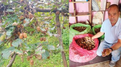 स्थानीय लक्ष्मीपति न्यौपानेले आफ्नो बारीमा २०७७ सालमा एक हजार ४०० बिरुवा लगाए । पहिलो उत्पादनका रुपमा गत वर्ष उनले रु दुई लाख ५० हजारको किबी बिक्री गरे । यस वर्ष रु सात लाखको बिक्री गर्ने लक्ष्य राखेको उनले बताए । “गत वर्ष बिक्रीको सुरुको वर्ष थियो, यस वर्ष ४५ क्विन्टल फल्ने अनुमान छ”, न्यौपानेले भने, “बिक्रीबाट प्राप्त भएको आम्दानीले घरखर्च राम्रै चलेको छ ।”