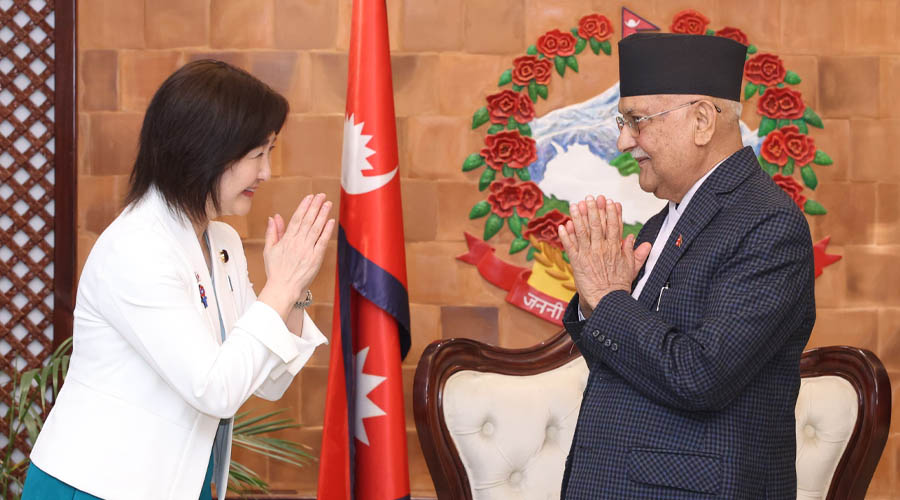 प्रधाननमन्त्री निवास, बालुवाटारमा आज अपराह्न भएको भेटमा प्रधानमन्त्री ओलीले नेपाल र जापानबीच सुमधुर सम्बन्ध रहेको चर्चा गरे। उनले वर्तमानमा जलवायु परिवर्तनका कारण उत्पन्न समस्या सबैको चासोको विषय भएको बताउँदै सगरमाथा संवाद आयोजना गरिएको उल्लेख गरे । संवादमा जापान सरकारको नेतृत्व गरेर सहभागी भएकामा उपमन्त्री इक्युनालाई धन्यवाद दिए ।