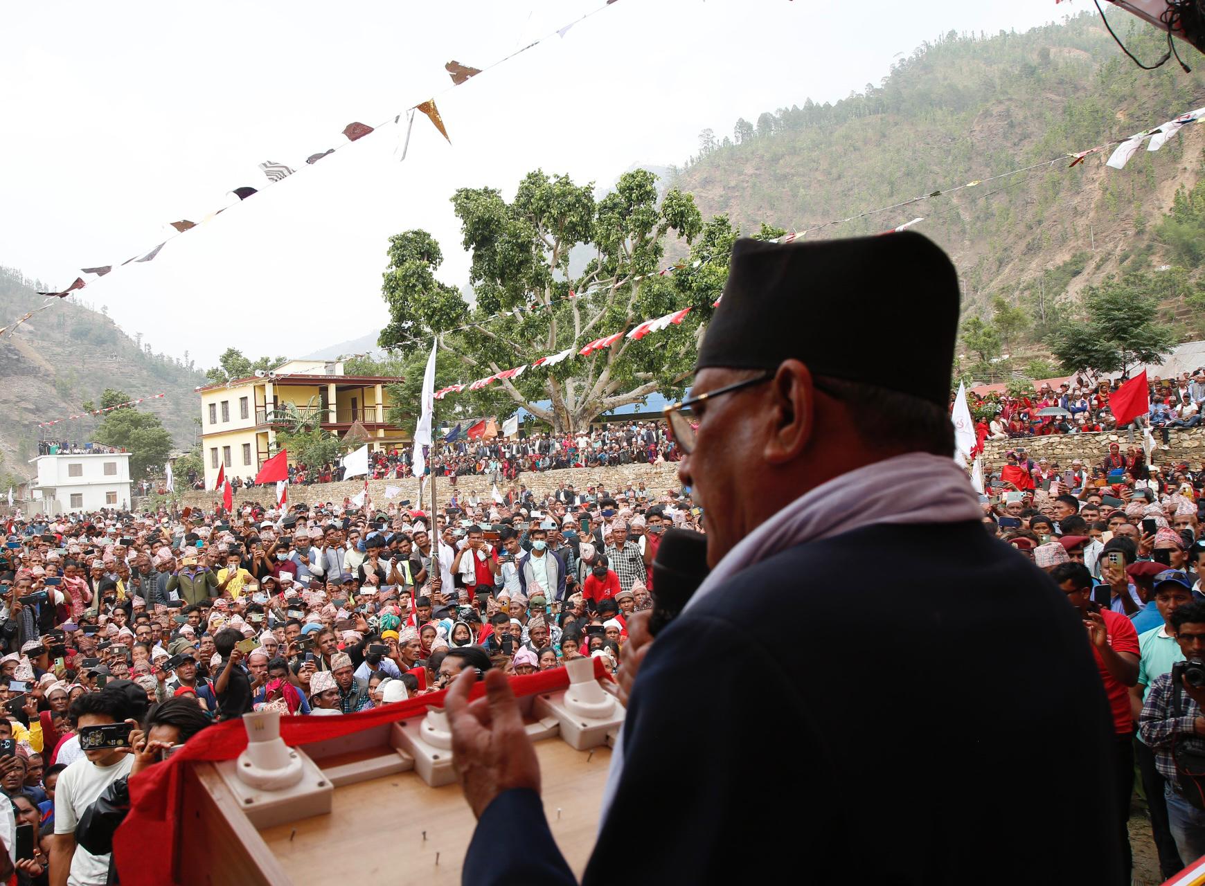 छेडागाड नगरपालिका–१२ मनघाटमा आयोजित जनसभालाई आज सम्बोधन गर्दै अध्यक्ष प्रचण्डले २७ वर्षअघिको क्रान्तिको गति र अहिलेको गति एकै खालको देखिएको बताए । पूर्वप्रधानमन्त्रीसमेत रहेका प्रचण्डले जनयुद्धमा जाजरकोटले पु(याएको योगदानको प्रशंसा गरे ।