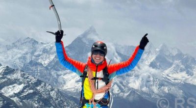 सो क्रममा नेपाल कराते महासंघ र नेपाल सितोरियो संघको लोगो अंकित ब्यानर तथा १३औं दक्षिण एसियाली खेलकुद (साग) का दोहोरो स्वर्ण पदक विजेता मन्डेकाजी श्रेष्ठको तस्विर सगरमाथाको चुचुरोमा लगेर शो गरेकी छिन् ।