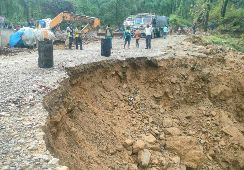 दाउन्ने खण्डमा सडक भासियो, पूर्वपश्चिम राजमार्ग अवरुद्ध