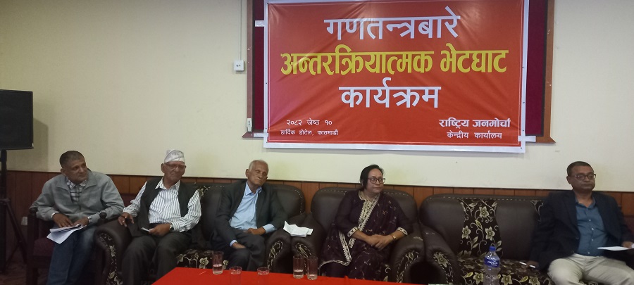 गणतन्त्र दिवस-२०८२ को अवसर पारेर राष्ट्रिय जनमोर्चाले आज यहाँ आयोजना गरेको अन्तरक्रियामा केसीले गणतन्त्रलाई सुदृढ तुल्याउन सुशासन, भ्रष्टाचार नियन्त्रण र अनियमितता अन्त्य गर्नुपर्ने सुझाव दिए । अध्यक्ष केसीले भने, “त्यसका लागि नेपालका सबै देशभक्त, लोकतन्त्र पक्षधर राजनीतिक शक्ति, बुद्धिजीवी र आमजनताको समेत गम्भीर ध्यान जानुपर्ने आवश्यकता छ ।”