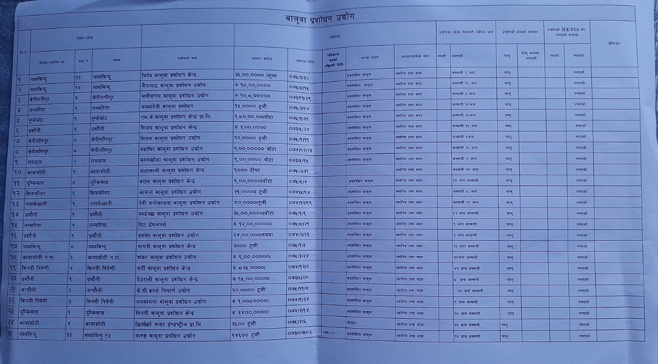 नवलपुर जिल्लाका बिनयी त्रिवेणी, मध्यबिन्दु, हुप्सेकोट, कावासोती र गैडाकोट क्षेत्रमा विभिन्न अवैध उद्योगहरू खुलेआम सञ्चालनमा आएका छन्। यी उद्योगहरू सम्बन्धित निकायमा दर्ता नगरी संचालनमा छन्, जसले कानुन उल्लंघन मात्र होइन, प्राकृतिक स्रोतको दोहन र वातावरणीय सन्तुलनमा गम्भीर असर पुर्याउँदै आएको देखिन्छ।