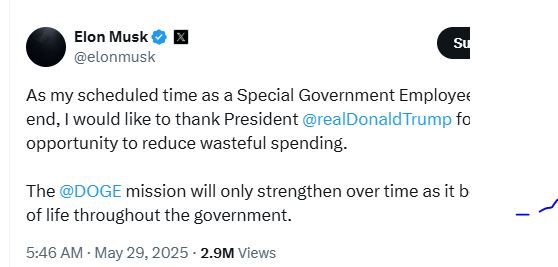 मस्कले यो काम गर्ने अवसर दिएकोमा राष्ट्रपति ट्रम्पलाई धन्यवाद दिएका छन् । उनको सामाजिक सञ्जालमा काम नलाग्ने खर्च कटौती गर्न आफूलाई जिम्मेवारी दिएकोमा सबैलाई आभार व्यक्त गरेका छन् ।